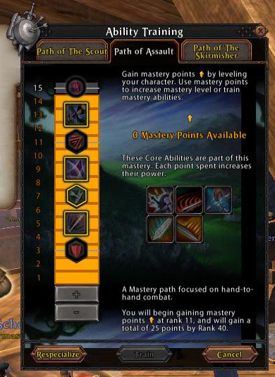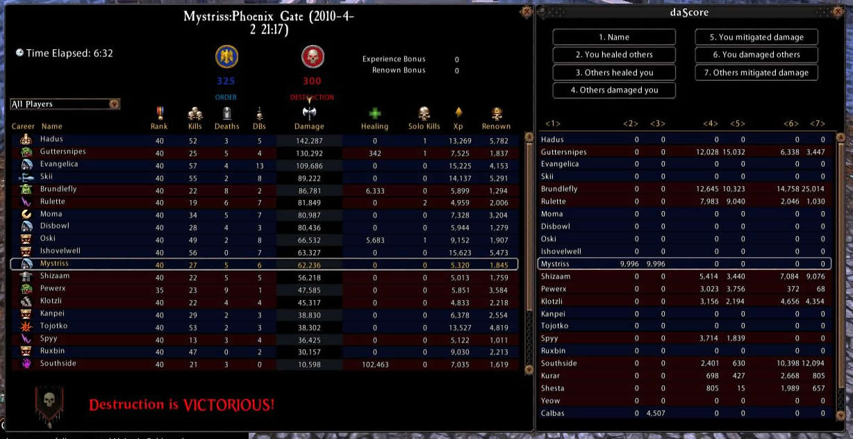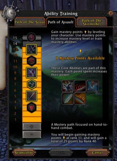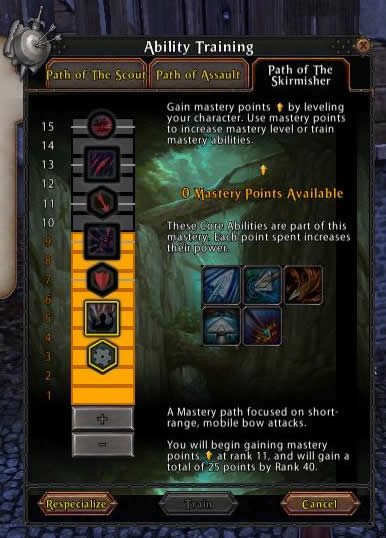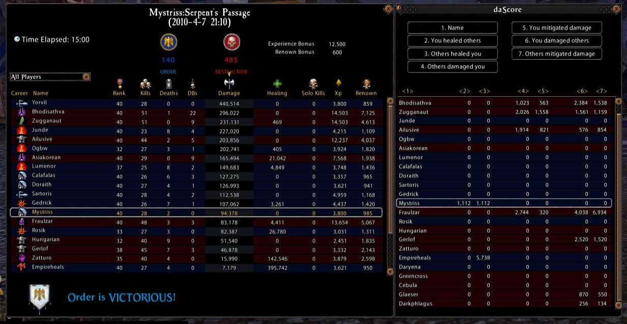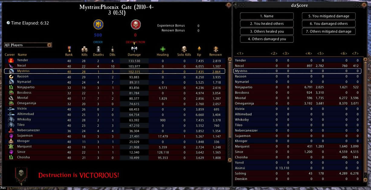 | My biggest problem was with rdps, during testing I did put renown points into dodge and disrupt and that did seem to help, although I found combining spiritual resistance in block one and magical resistance in block two to be cheaper than spending the points for disrupt in block three. Higher weapon skill and initiative would also be a good choice, I was running at 196 and it was much too low. I also highly suggest using the moral 1 Concealment. I absolutely love Exploit Weakness, in my opinion it is by far the best mastery ability in the tree; were it not so high in the tree I would definitely pick it up for my usual Scout/Assault build. Swift Strikes is now a part of my usual Scout/Assault build, I find the multiple attacks very useful for higher block/parry rated mdps and tanks. I had a lot of fun with Sweeping Slash and it came in quite handy with all those rubber armed enemies out there. Between Counterstrike / Opportunistic Strike and Brutal Assault I was able to keep the majority of my targets from doing too much damage to me. *Note: for testing purposes I attempted to limit my ranged ability usage to only Broadhead Arrow. The damage was more than I expected and the surprise factor garnered me more than a few kills. Running 996 Strength and 538 Weapon Skill, Brutal Assault and Exploit Weakness both gave me semi- regular 1-1.5k hits, Swift Strikes was averaging 200-250 per strike, and Sweeping Slash was in the 200-250 range without Vengeance, Steady Aim, or Unshakeable Focus. Draw Blood ticked at around 150, Grim Slash was hitting for around 400. Counterstrike and Opportunistic Strike seemed to range quite a bit from 100-400, but between those and Brutal Assault I was able to keep quite a few targets from doing too much damage to me. In my session 2 video I took on some of the "big boys" to get a better idea of the damage capabilities, the stats are exactly the same so you might want to check that out. Shintto is a RR80 Chosen in full Warlord. At the end is Axewoof, a RR80 full Tyrant S&B Black Guard, one of the best on the server; unfortunately, my liniment wore out and I didn't notice until it was too late. I had him down to 90% once... ;) The Sinister Assault tactic is pretty much a must have. I was not happy with No Respite, but I did put a renown point into increased parry so it might be handy if you chose not to do that. I only ran out of action points a couple times, mostly when fighting higher renown rank tanks, so I did not take Merciless Soldier; although I've always had a knack for AP management so you may find it worth taking. My favorite tactic set was Sinister Assault, Expert Skirmisher, Wrist Slash, and Bullseye, though I found Pierce Defenses handy as well. ( hide commentary... ) |
